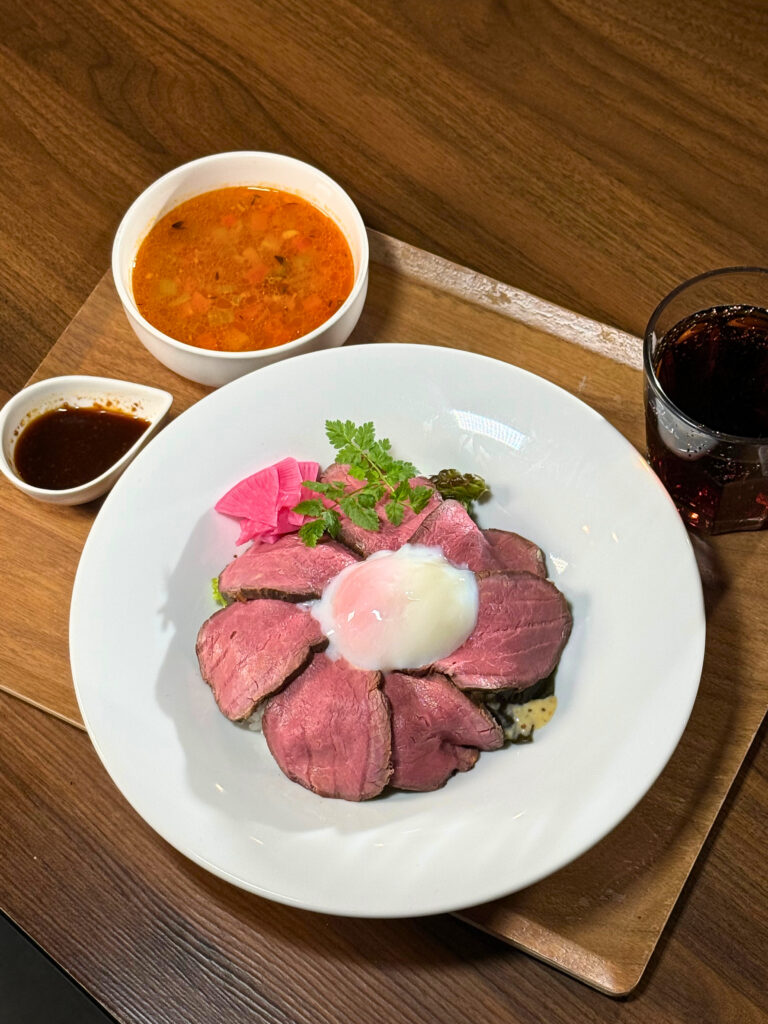 🥩国産牛のローストビーフ丼ランチ(スープ・ドリンク付き) 1,400円