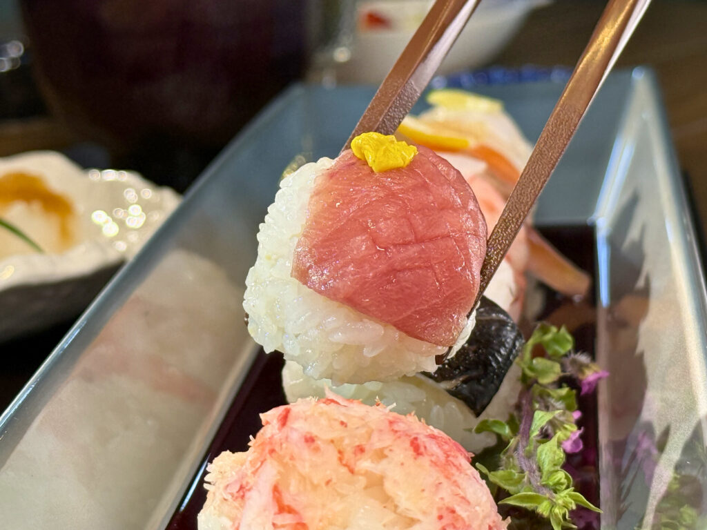 シェフのセンスが光る7種のてまり寿しから2種をご紹介✨