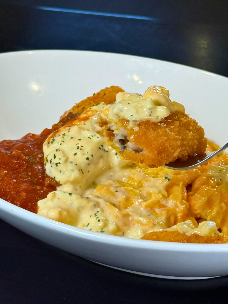 カレー×デミグラスソースのWでコクがあるけど、意外とスッといける味でバランスの良い組み合わせ💕