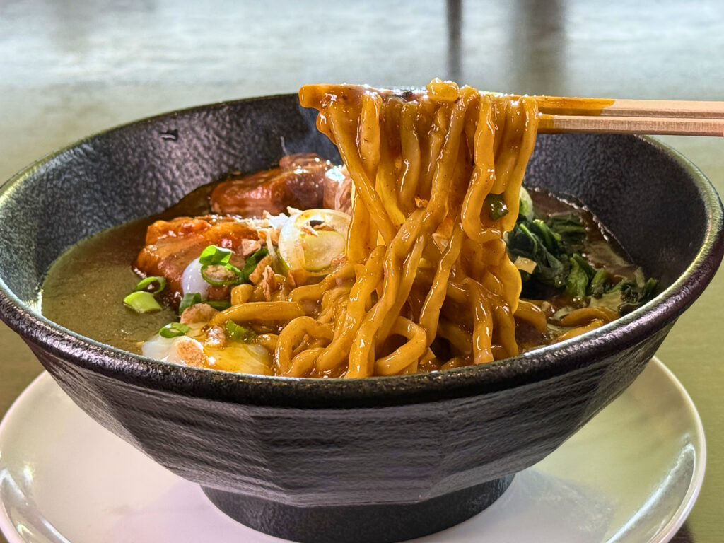 太麺で、カレーの濃厚さはそのままに、うまみたっぷりのカレーになっています!