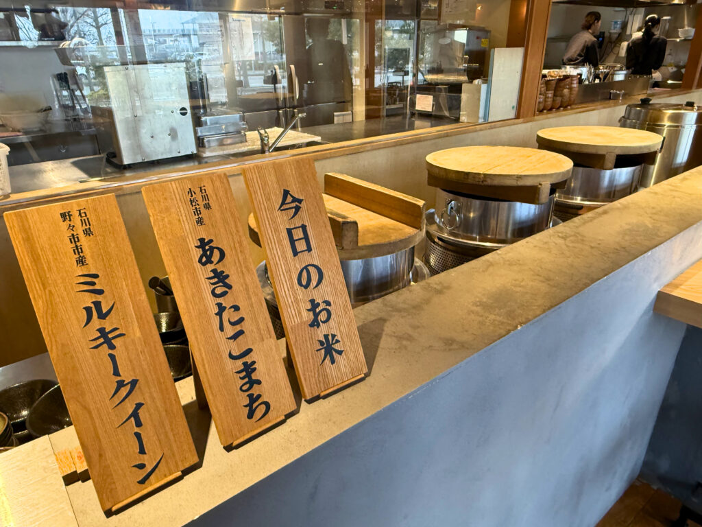 羽釜で炊き立てご飯は、お米マイスターに選定してもらったハンバーグに合うお米を季節ごとにブレンド。