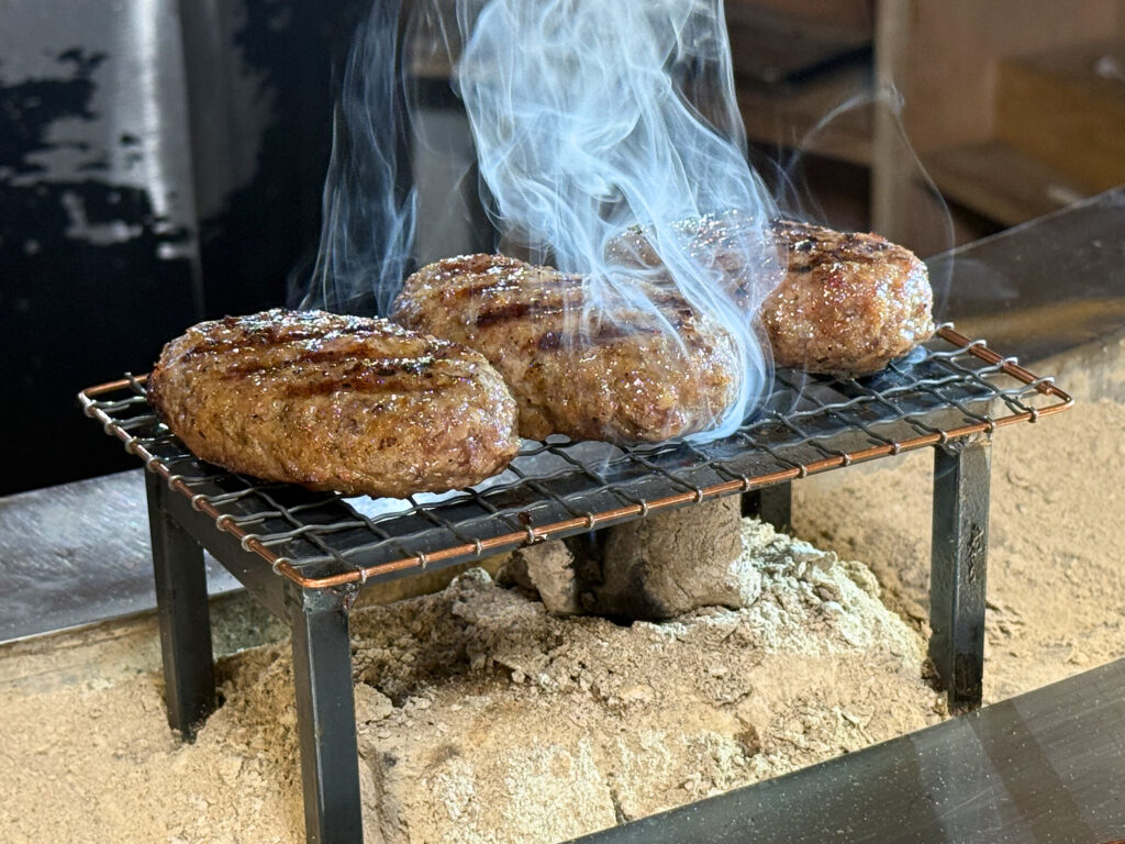 炭火で焼き上げると肉の脂をぎゅっと閉じ込めてふんわり仕上がります♪