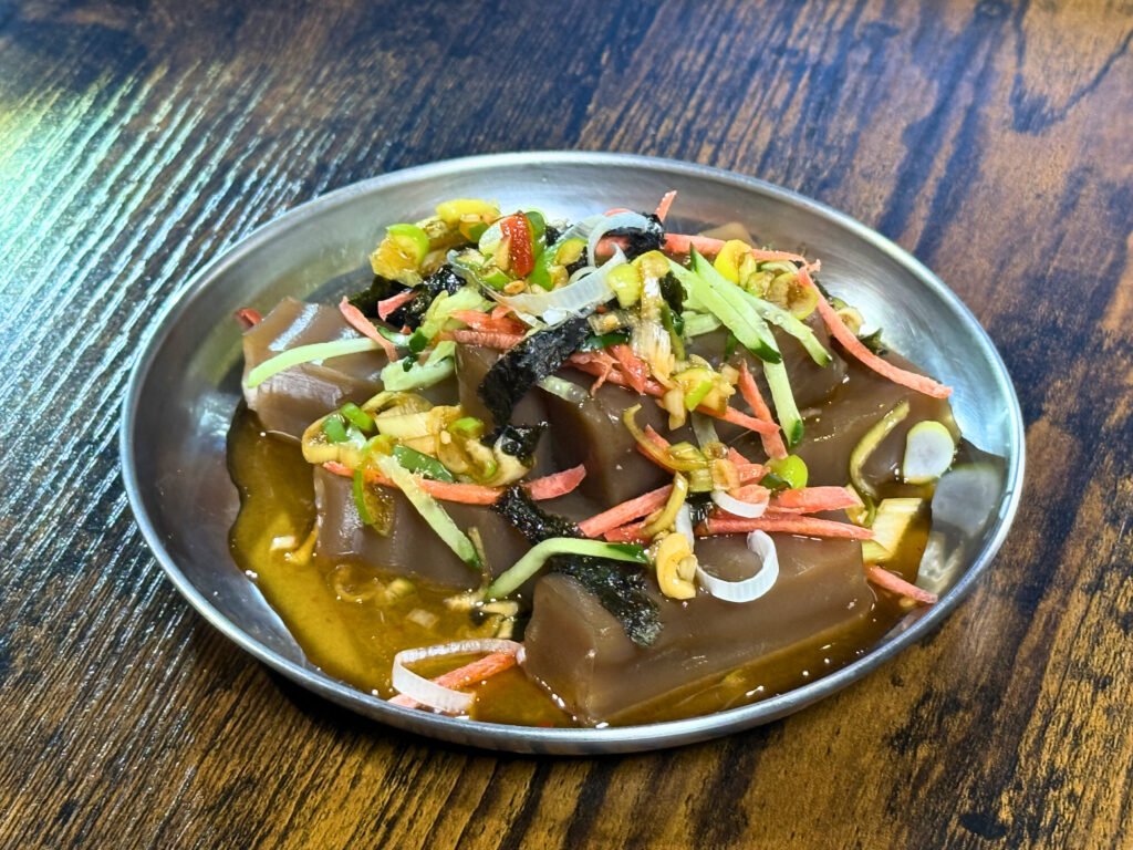 どんぐりの粉を練り上げたゼリー状の食べ物で、薬味としょうゆベースのタレでいただきます♪