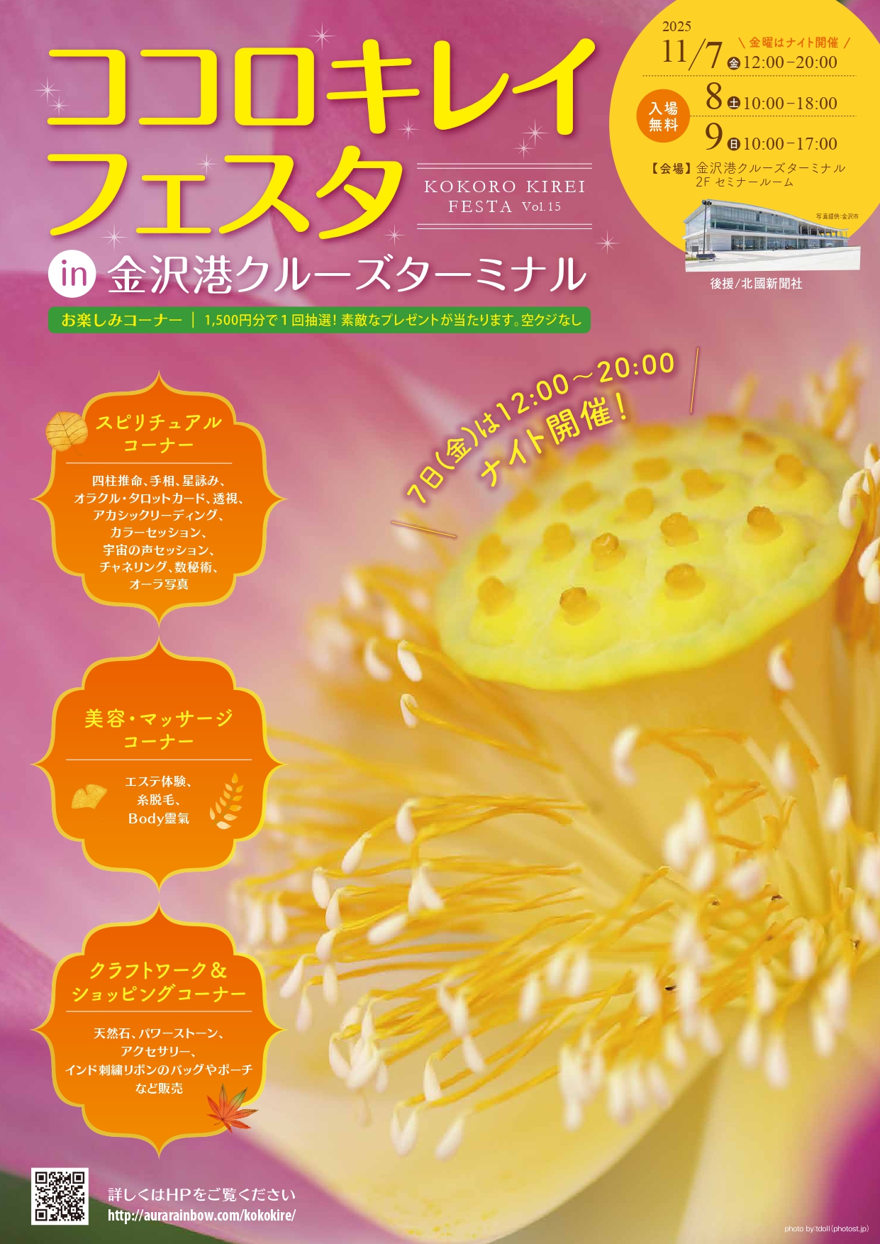11/7(金)~11/9(日)の3日間、金沢港クルーズターミナルにて「ココロキレイフェスタ」が開催されます!
