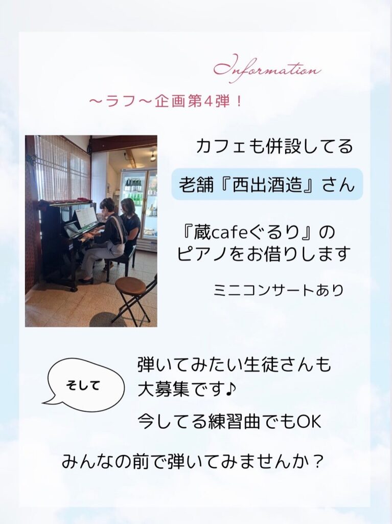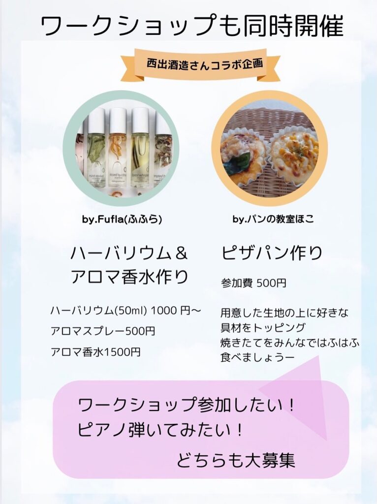 音楽教室講師たちによるピアノの演奏や、パンやアロマグッズをつくるワークショップなどが行われるとのこと!