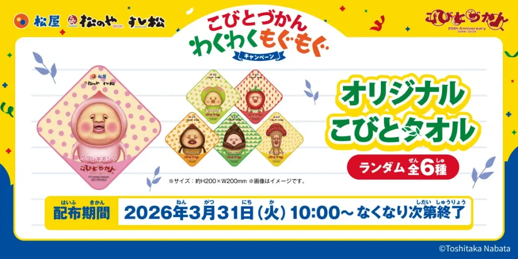 第1弾では、対象メニューを注文すると、限定デザインの「オリジナルこびとタオル(全6種)」がランダムでもらえる特典が登場!