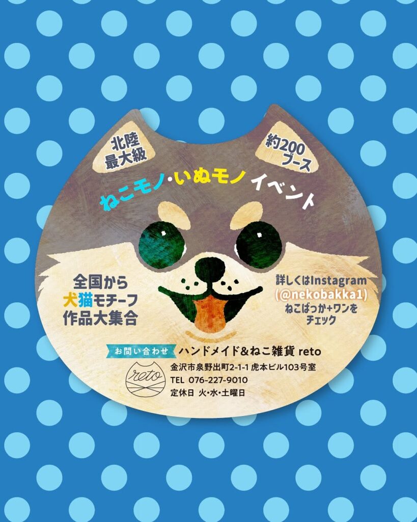 北陸最大級 ねこモノ・いぬモノイベントで、日本全国から作品や雑貨各種ワークショップ、ワン・ニャンモチーフのスイーツなどが大集合します♪