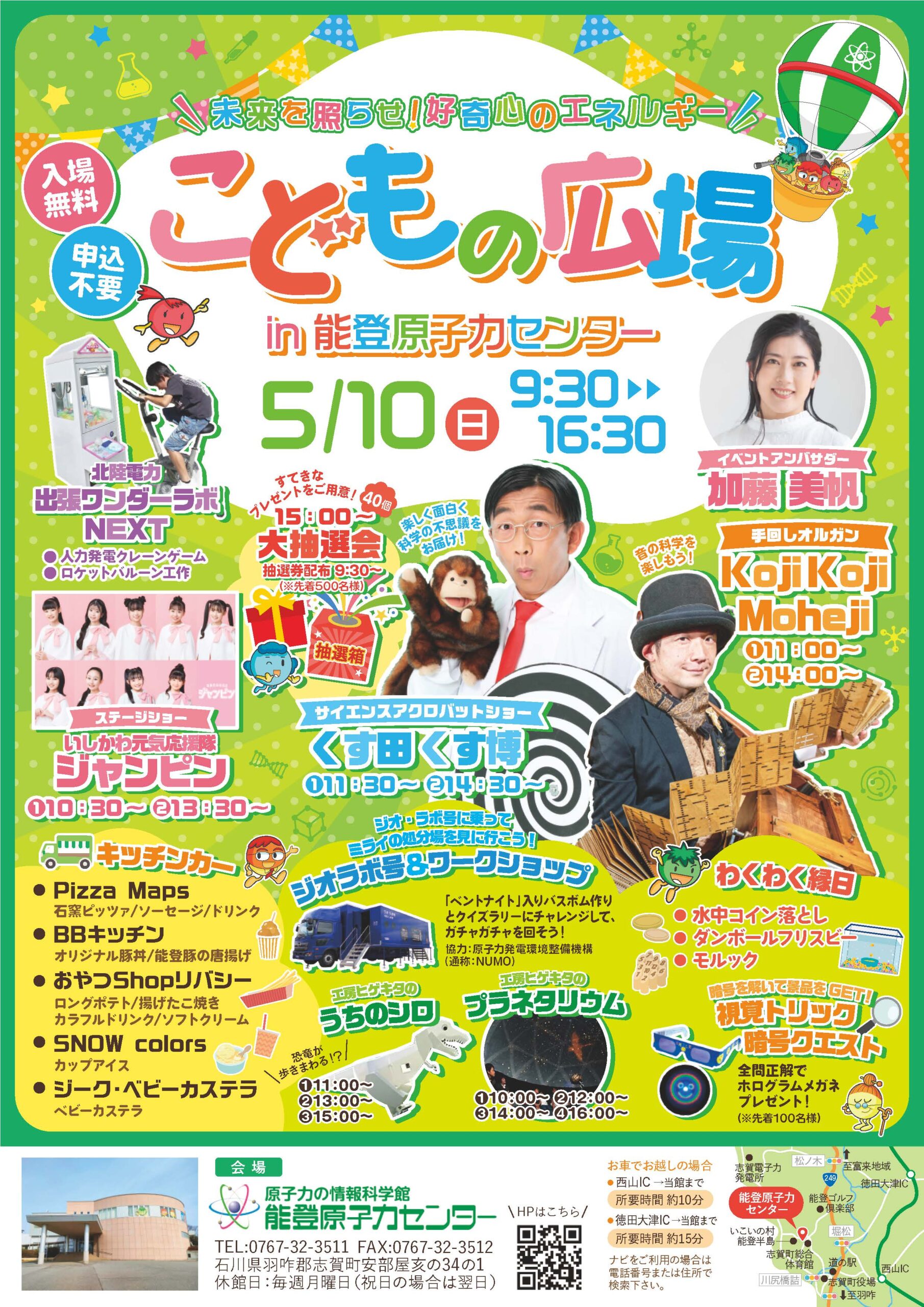 5月10日(日) 、志賀町の能登原子力センターにて「こどもの広場」が開催されます!