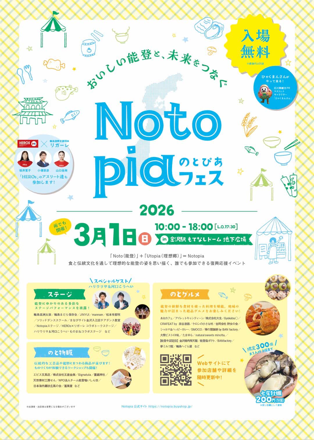 3月1日(日)、もてなしドーム地下広場にて「Notopia のとぴあフェス」が開催されます!