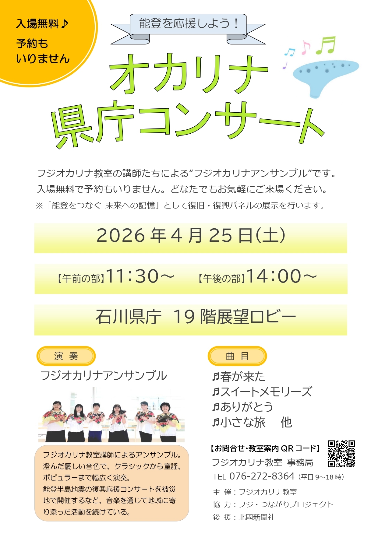【4/25(土)】オカリナ県庁コンサート@石川県庁