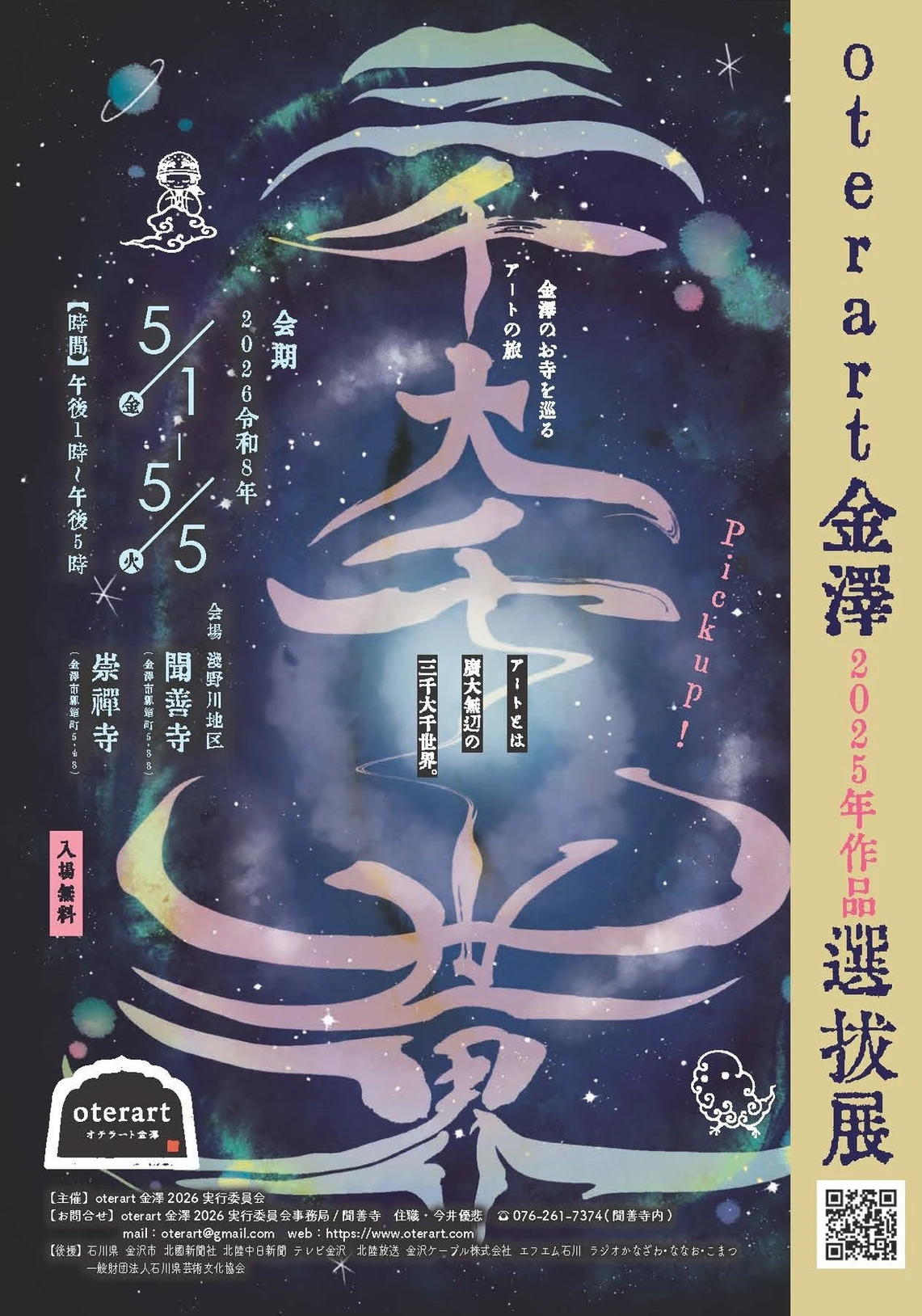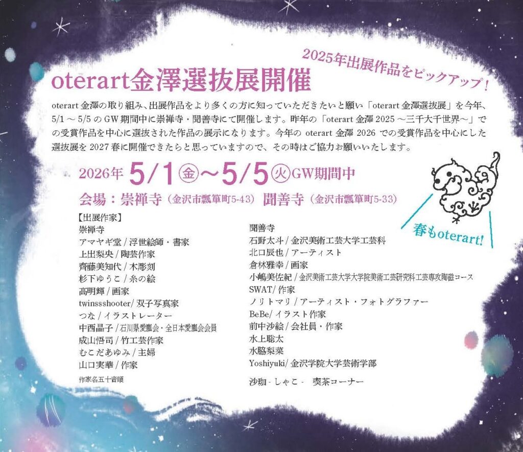 2026年5月1日(金)~5月5日(火・祝)のゴールデンウィーク期間中、金沢市の崇禅寺と聞善寺にて「oterart金澤 選抜展」が開催されます。