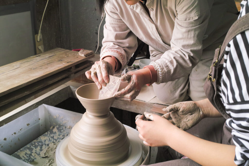 九谷焼が生まれる現場を間近でご覧いただける工場見学や、手仕事の楽しさを体験できる「手仕事発見!」、「轆轤と熊のまつり」限定品の販売や、大人向けの「ねん土引き上げ大会」など盛りだくさんな内容です♪また、フードや雑貨などの素敵なお店が約30店舗も集まります!