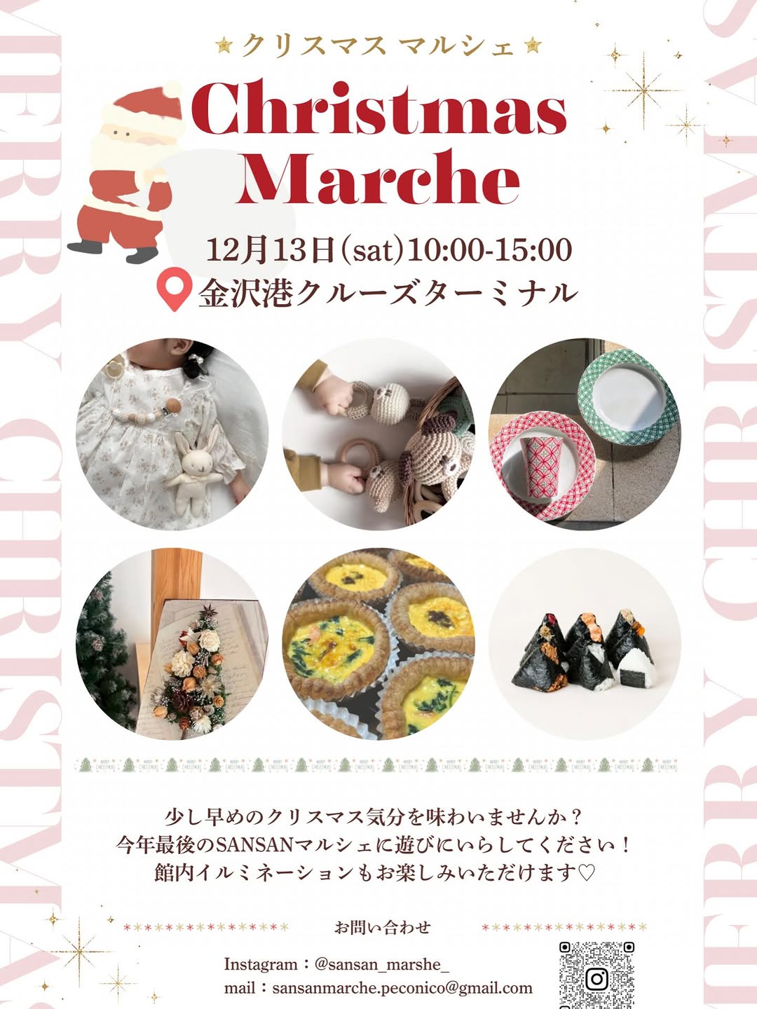 12月13日(土)、金沢港クルーズターミナルでSANSANマルシェの「クリスマスマルシェ」が開催されます。
