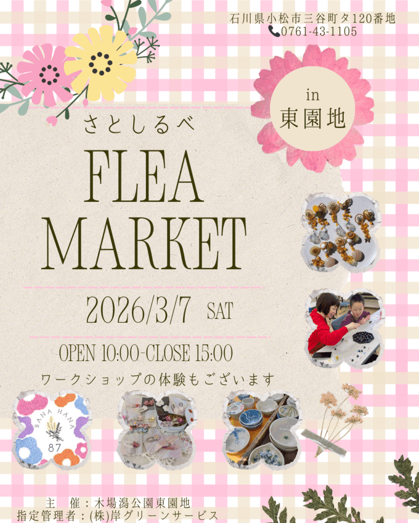 3月7日(土)、木場潟公園東園地にて、「さとしるべフリーマーケット」が開催されます。