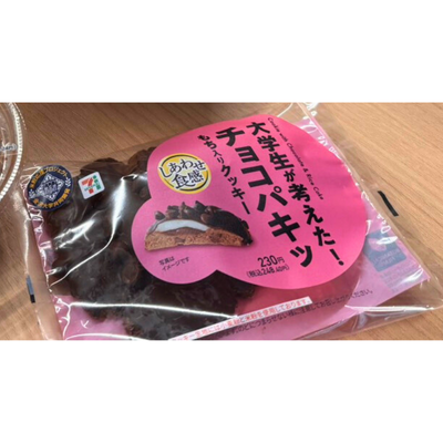 中から餅が出てくる新食感の米粉クッキーです。チョコチップとチョコソースもアクセントになっています。