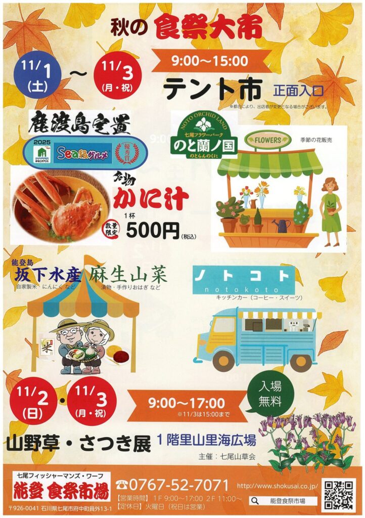 11月1日(土)~3日(月・祝)の3日間、道の駅 能登食祭市場で「秋の食祭大市」が開催されます。
