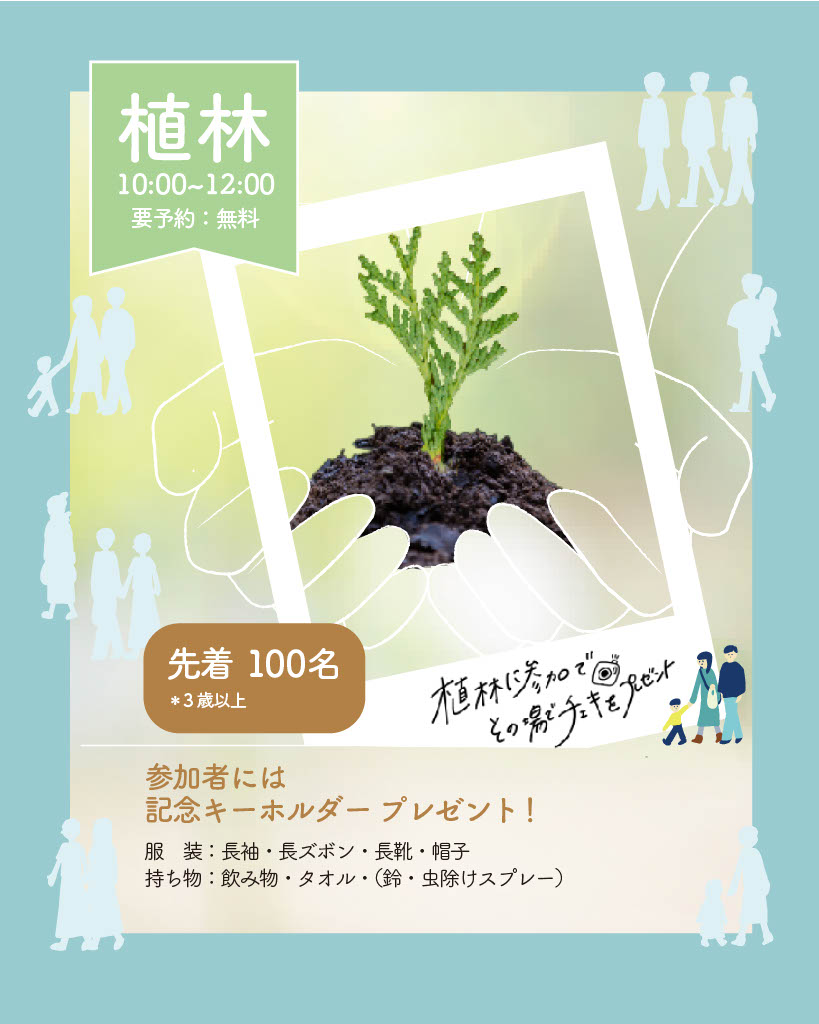 植林体験、木や山を楽しむワークショップ、フィールドアクション等が楽しめるイベントで、ワークショップの数は過去最多とのこと♪