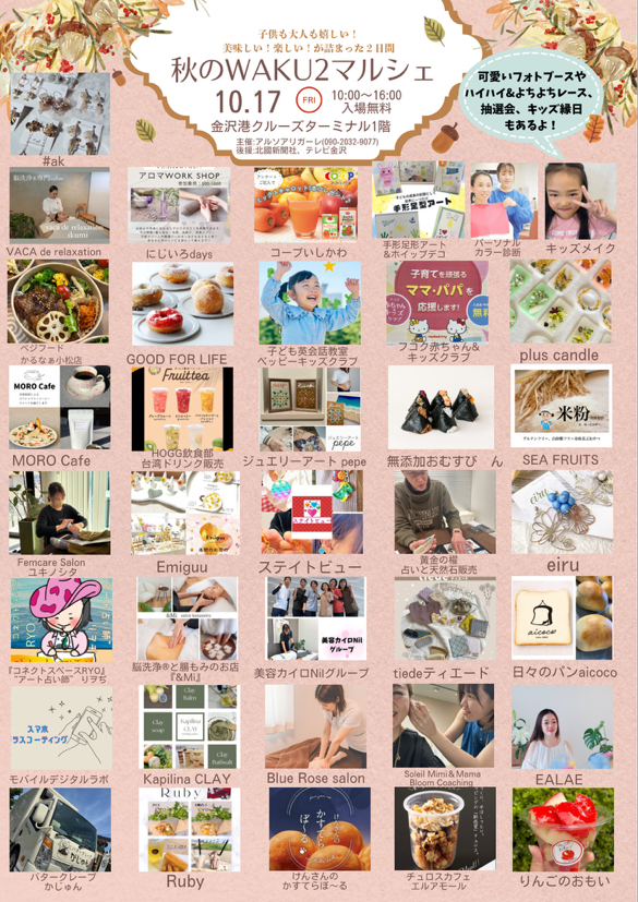 10月17日(金)・18日(土)、金沢港クルーズターミナルで「秋のWAKU2マルシェ」が開催されます。