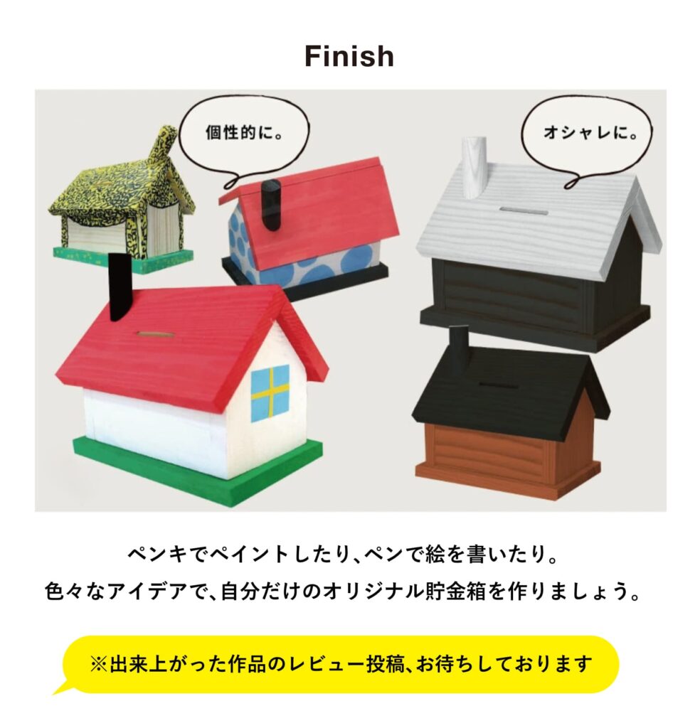好きな色のパーツを組み合わせて、自分だけのかわいいおうち型貯金箱が作れます!