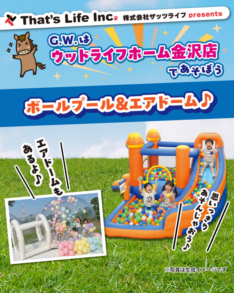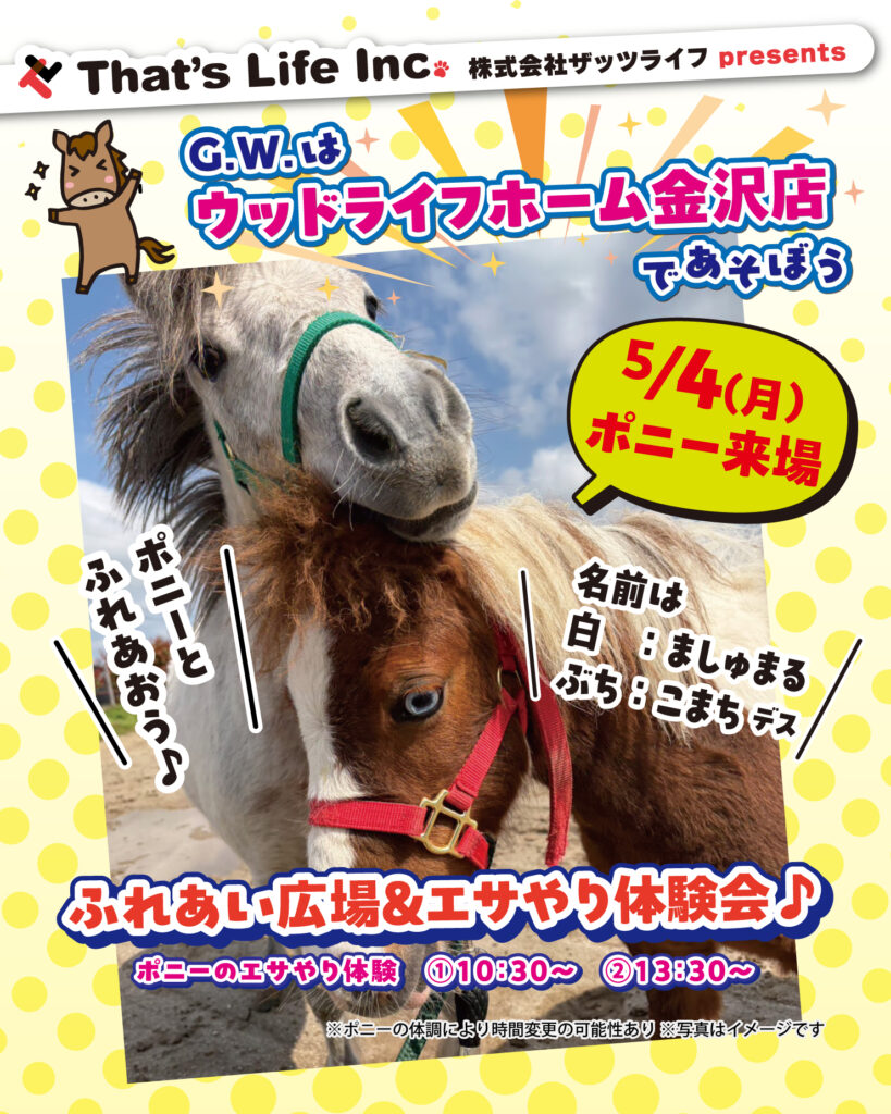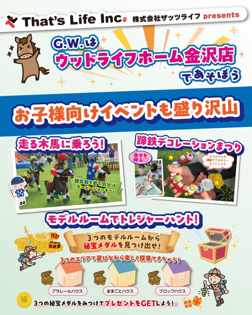 | イベント名 | G.W.はウッドライフホーム金沢店であそぼう おウマっし!フェスティバル |